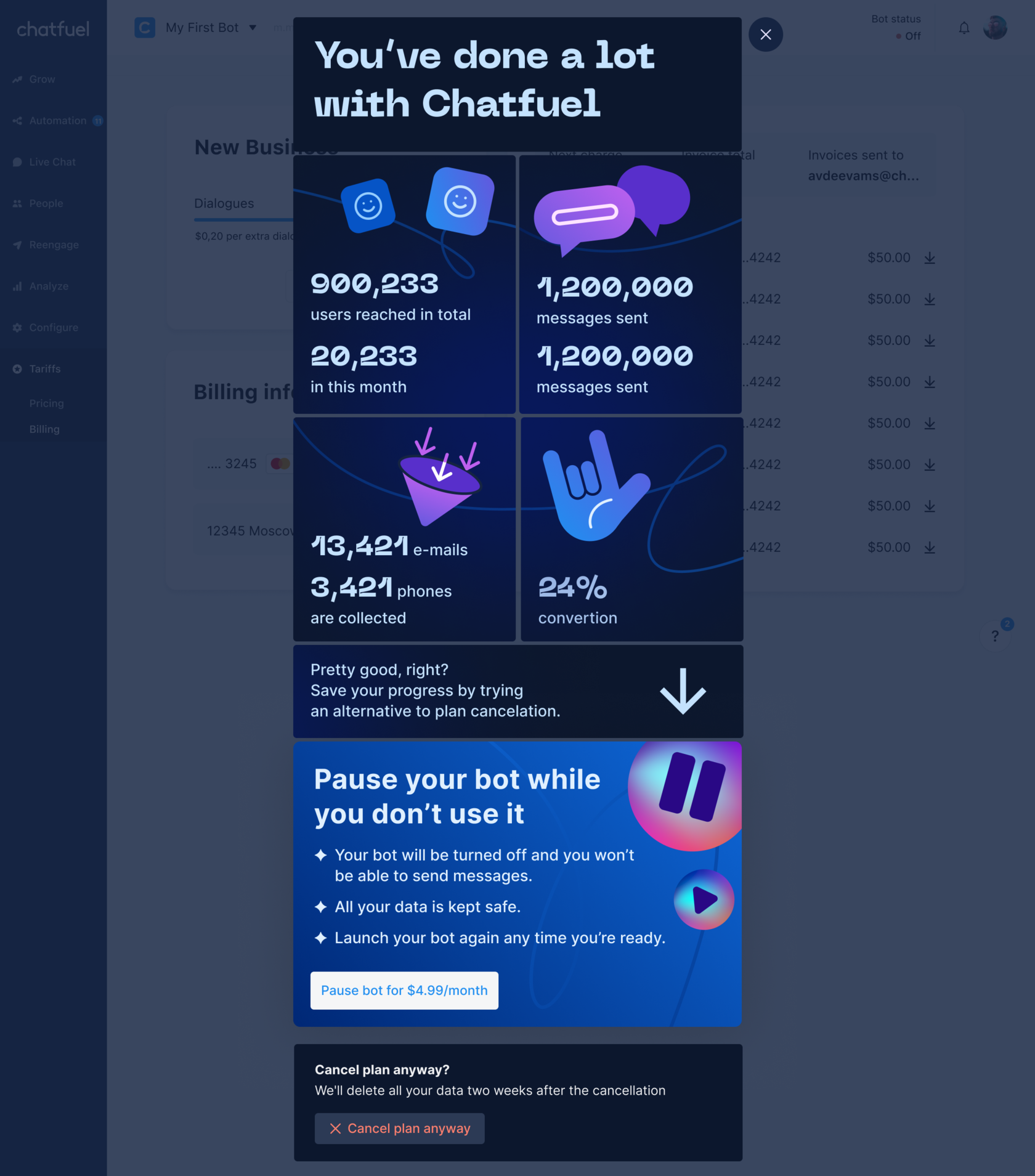 Chatfuel is a no-code chatbot solution for Facebook, Instagram, Messenger and WhatsApp. Trusted by 7m+ businesses.